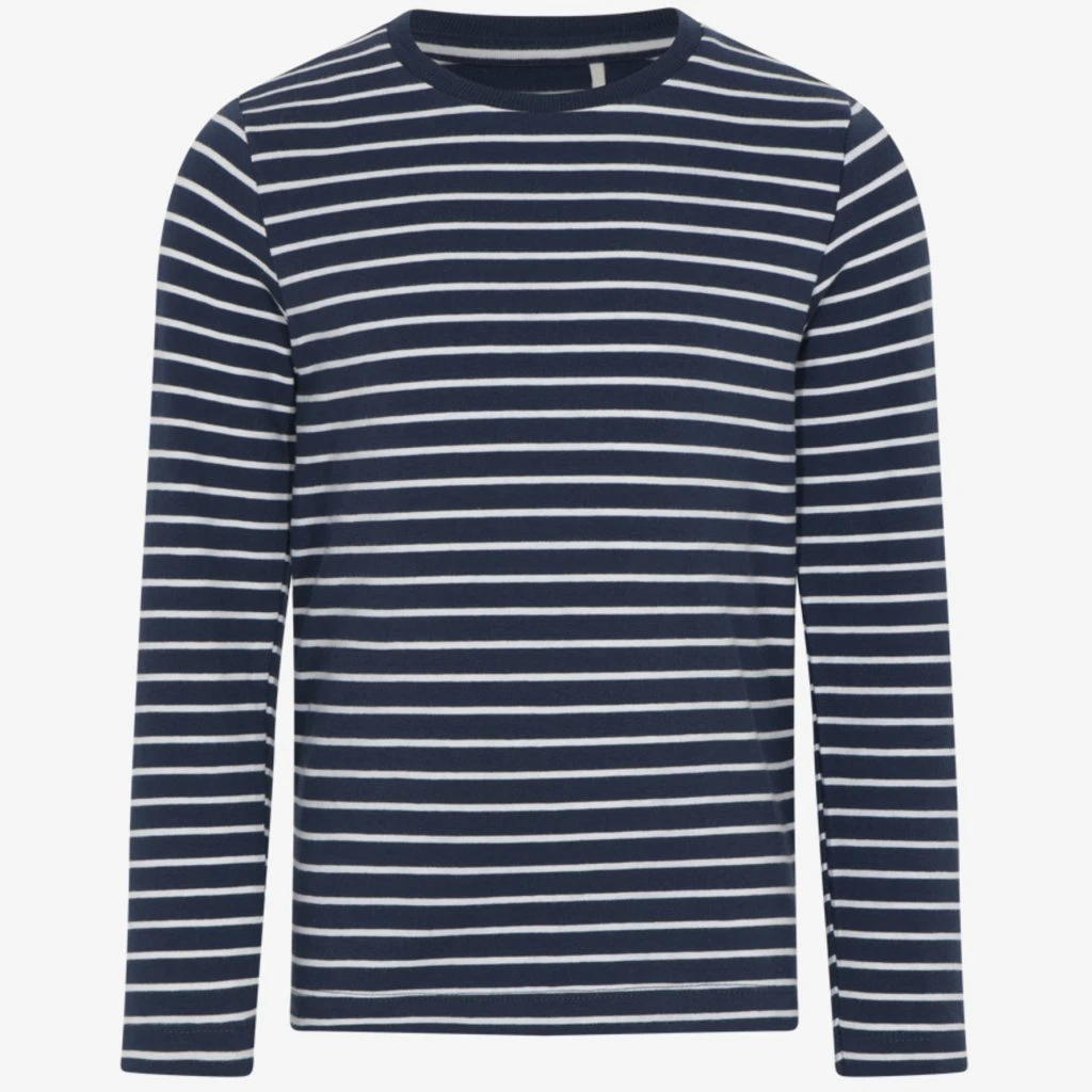 T-Shirt von En Fant. Das T-Shirt besteht aus Bio-Baumwoll-Single-Jersey mit Stretch. Das T-Shirt hat durchgehende Streifen und lange Ärmel.