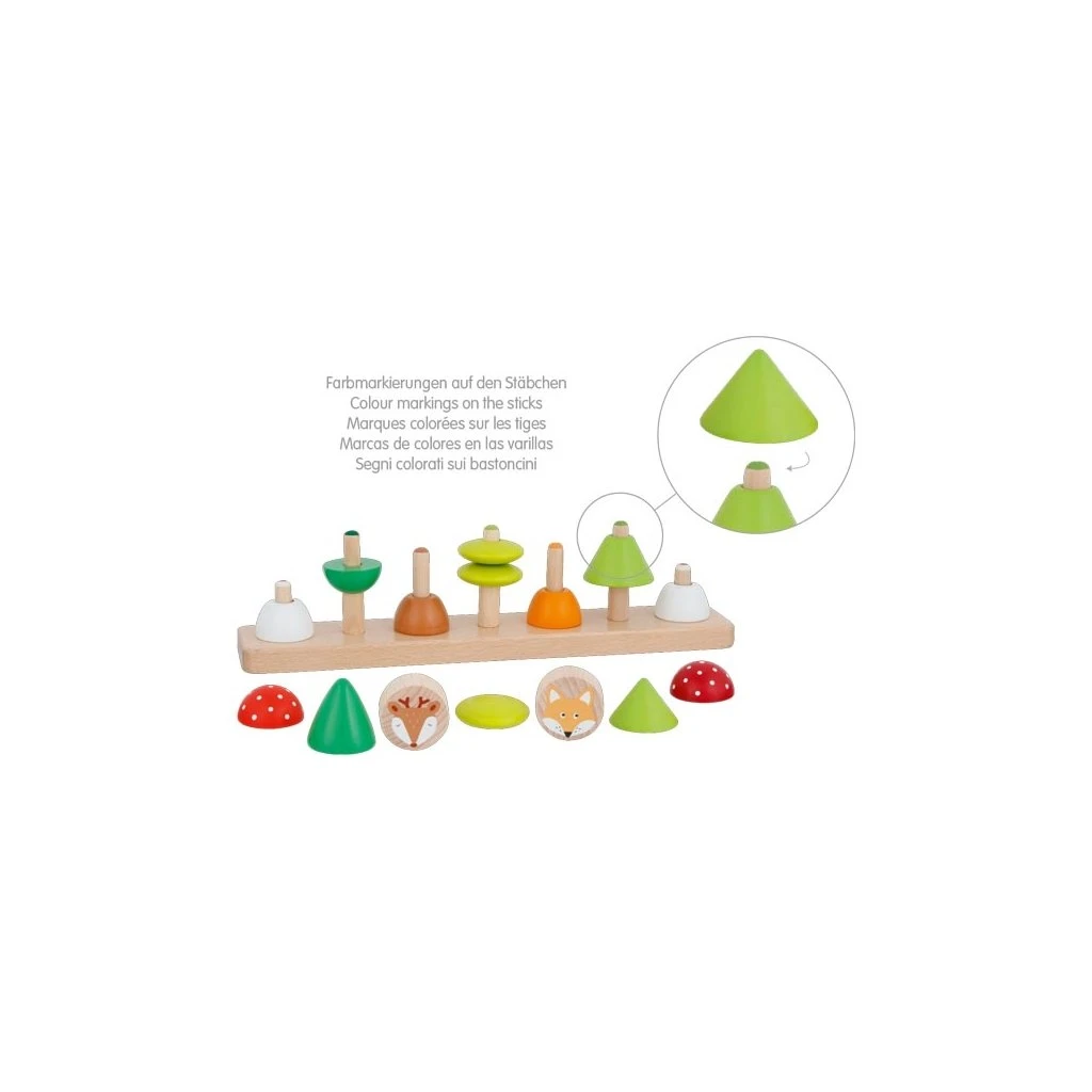 Die niedlichen Waldfreunde laden spielerisch dazu ein, dass die Kleinsten ihre Feinmotorik und die Augen-Hand-Koordination üben. Durch das Farben- und Formen-Sortierspiel aus Buchenholz lernen die Kinder mit Hilfe des Fuchses und Reh, die ersten Tiere des Waldes kennen und den Lebensraum mit Nadel- und Laubbäumen. Der Glückspilz darf natürlich auch nicht fehlen. Durch die hochwertige goki Verpackung ist es ein perfektes Geschenk zum 2. Geburtstag.