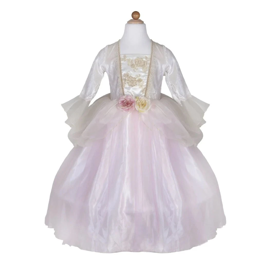 Unser königliches Prinzessinnen-Kleid ist eine zarte Verbindung aus staubigem Gold und zartem Rosa und genau das Richtige für tolle Prinzessinnen-Feiern, Fasching oder Fastnacht