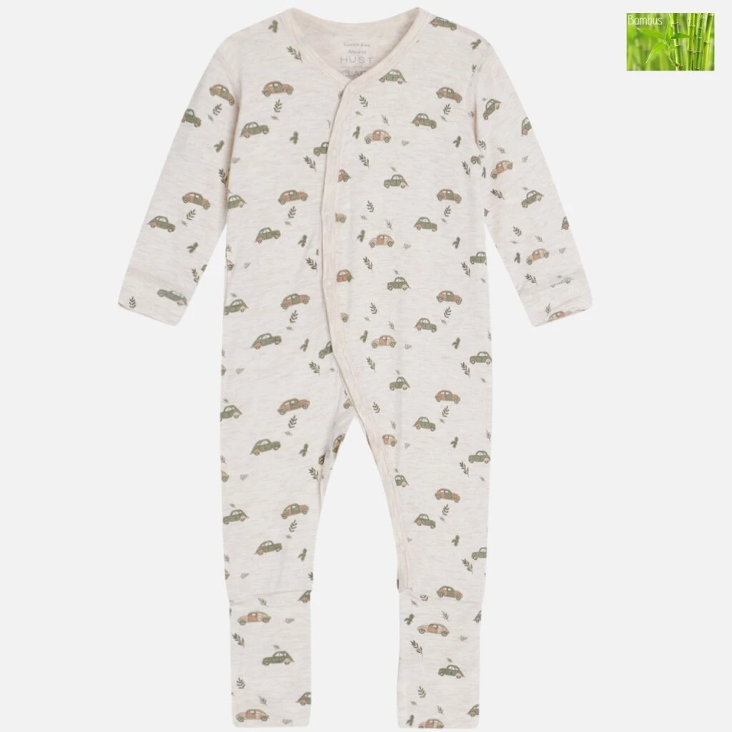 Langarm-Jumpsuit aus weicher und elastischer Bambus-Viskose mit Auto-Print. Der Body ist vom Hals bis zum linken Fuß leicht asymmetrisch geknöpft. Verfügt über faltbare Stiefeletten mit einer Öffnung für die Füße, die auch gefaltet und als Socken verwendet werden können. Dieses Produkt ist Oeko-Tex 100®-zertifiziert.