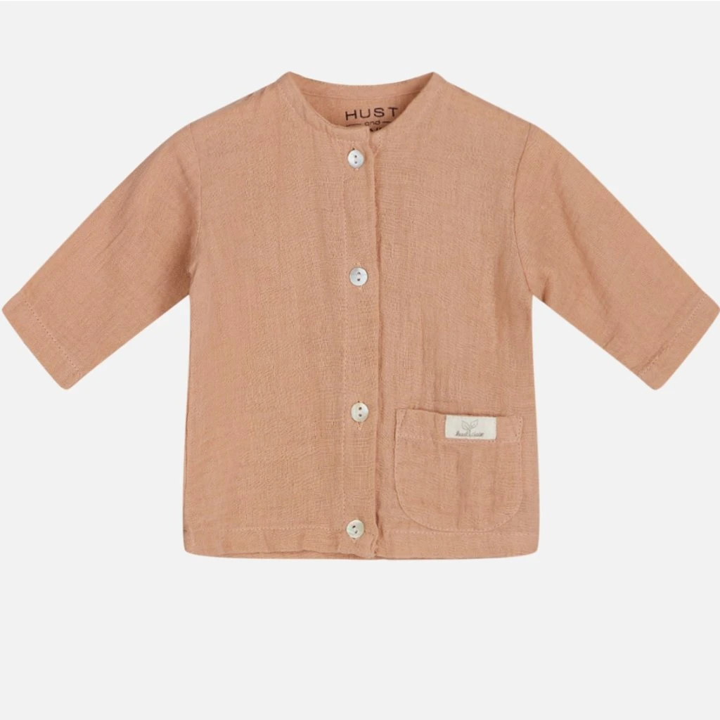 Cardigan aus gewebter Baumwolle mit einer Tasche unten links. Dieses Produkt ist aus 100 % Bio-Baumwolle hergestellt.