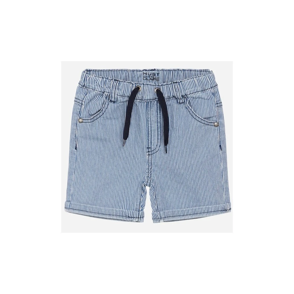 Denim-Shorts mit Streifen und Taschen vorne und hinten. Mit elastischem Tunnelzugbund. Verstellbare Taille.