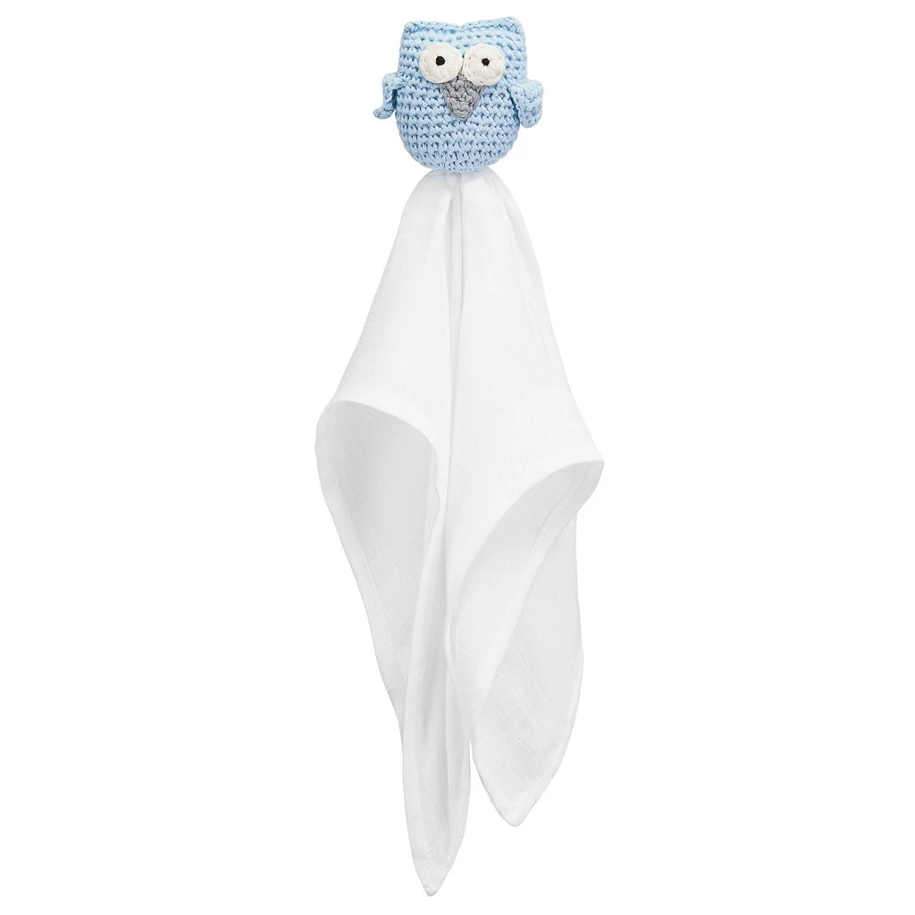 Ab ins Bettchen, deine Lieblingseule wartet.. Dieses super süße Kuscheltuch XL von Maylily in der Farbe Blau mit süßer Eule wird der neue Liebling von Ihrem Schatz.