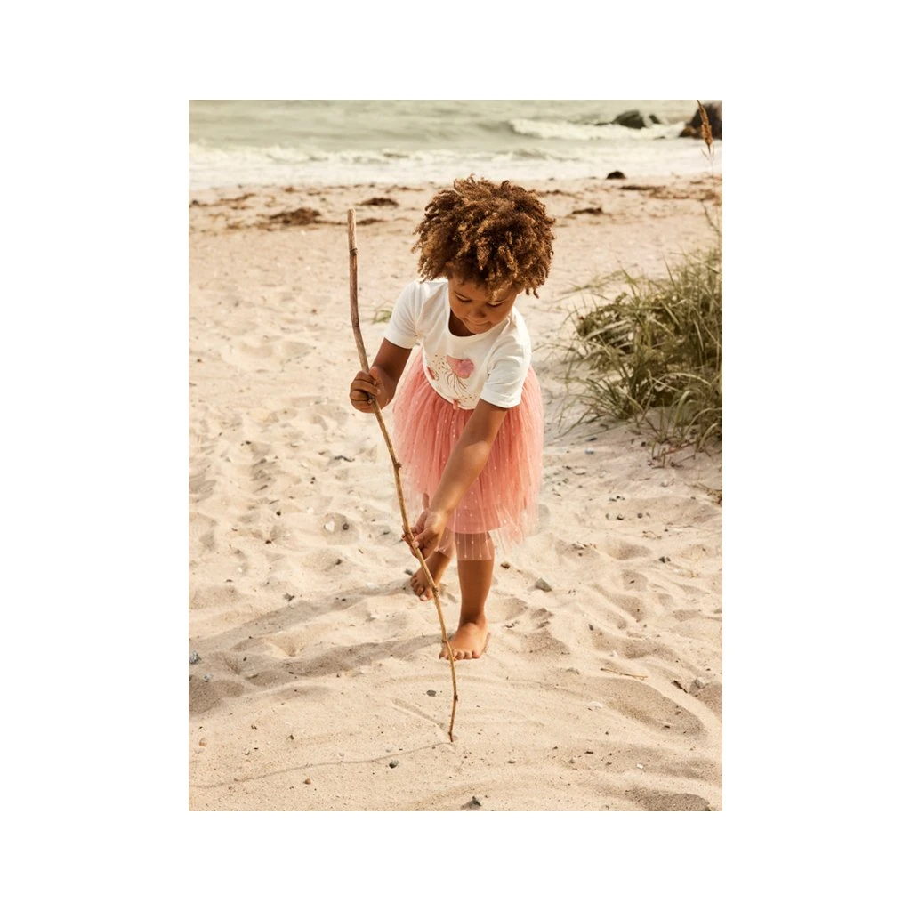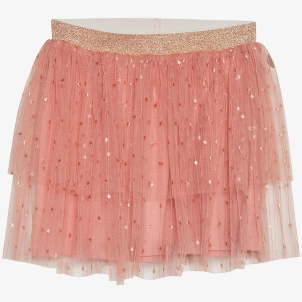Schöner Rock von Minymo. Der Rock hat mädchenhafte Details wie den glitzernden elastischen Taillenbund und mehrere Schichten.