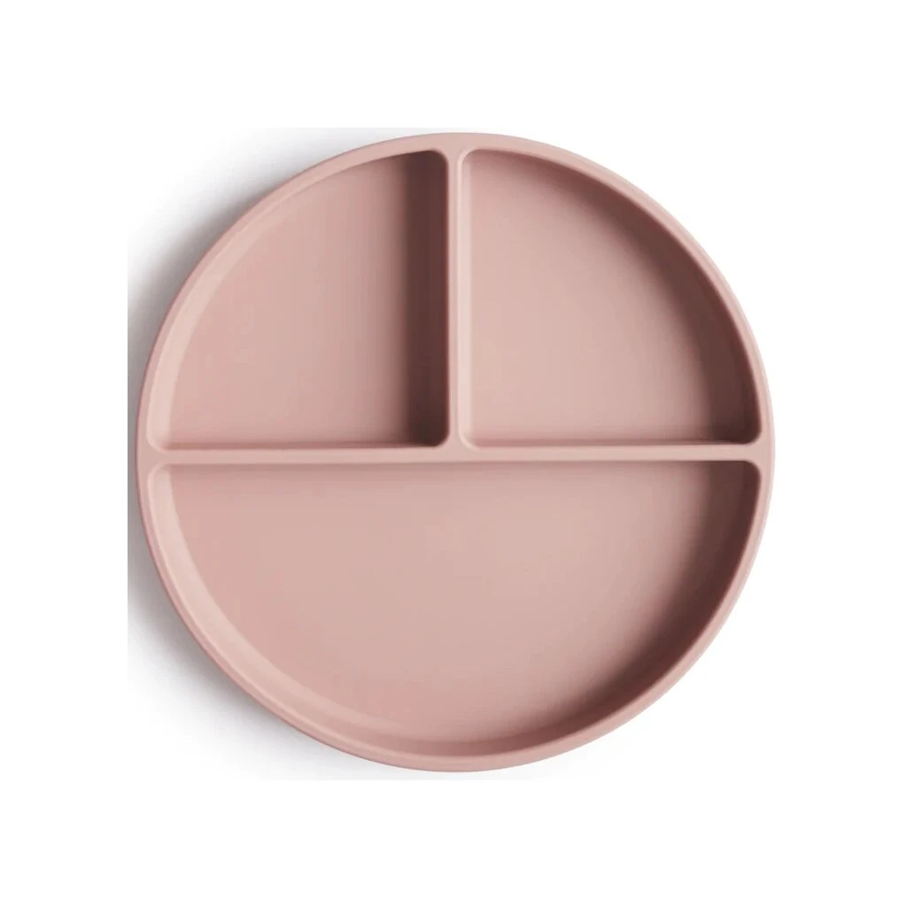 mushie Kinder-Silikon-Teller mit Einteilung – Saugfuß altrosa