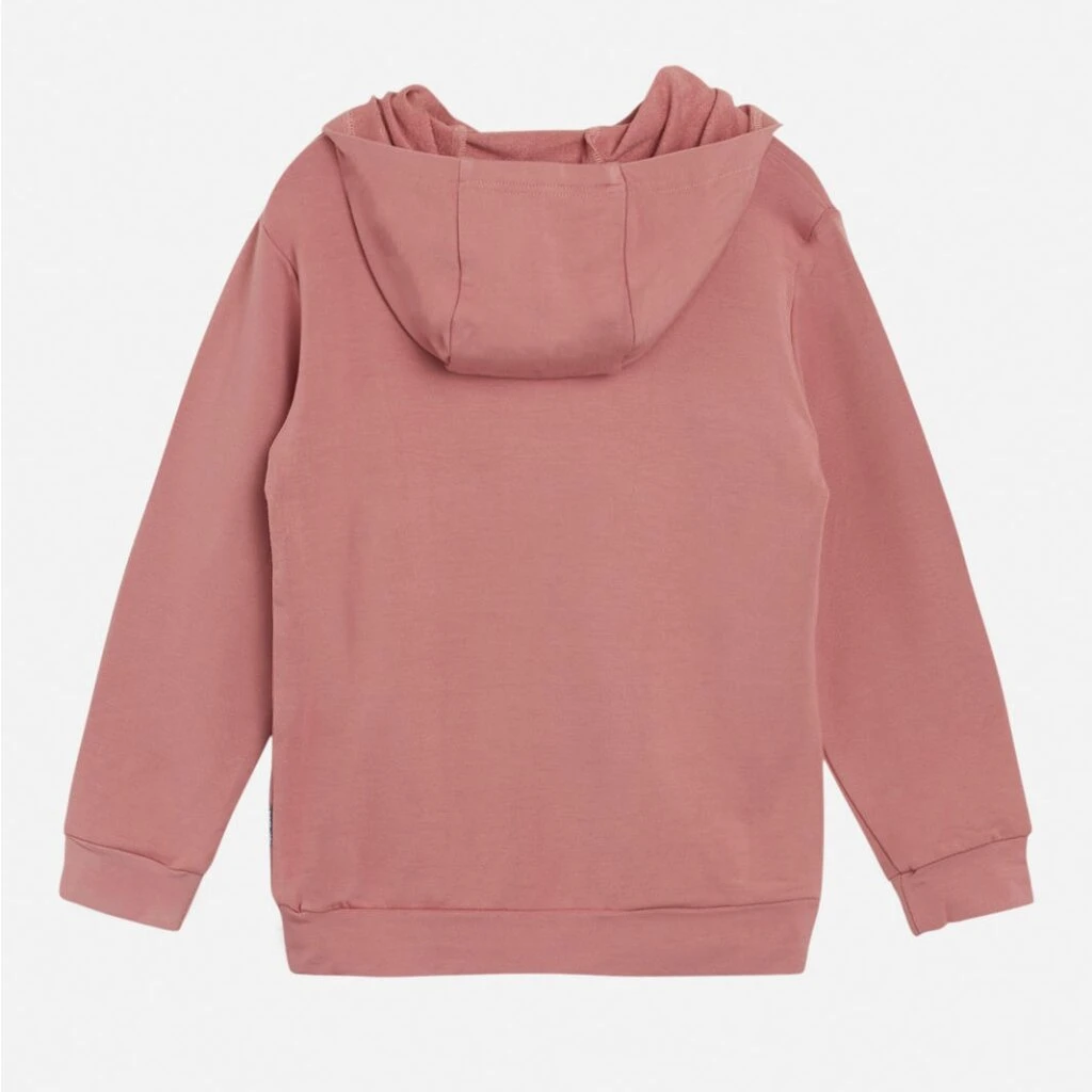Stinus – Sweatshirt in der Farbe Ash rose und der Größe 122 von Hust and Claire Material: 95% Viscose from Bamboo 5% Elastane Sweatshirt aus weicher, dehnbarer Bambusviskose mit Kapuze und Tasche am Bauch. Dieses Modell verfügt über eine weiche und gebürstete Innenseite. Dieses Produkt ist Oeko-Tex 100® zertifiziert.