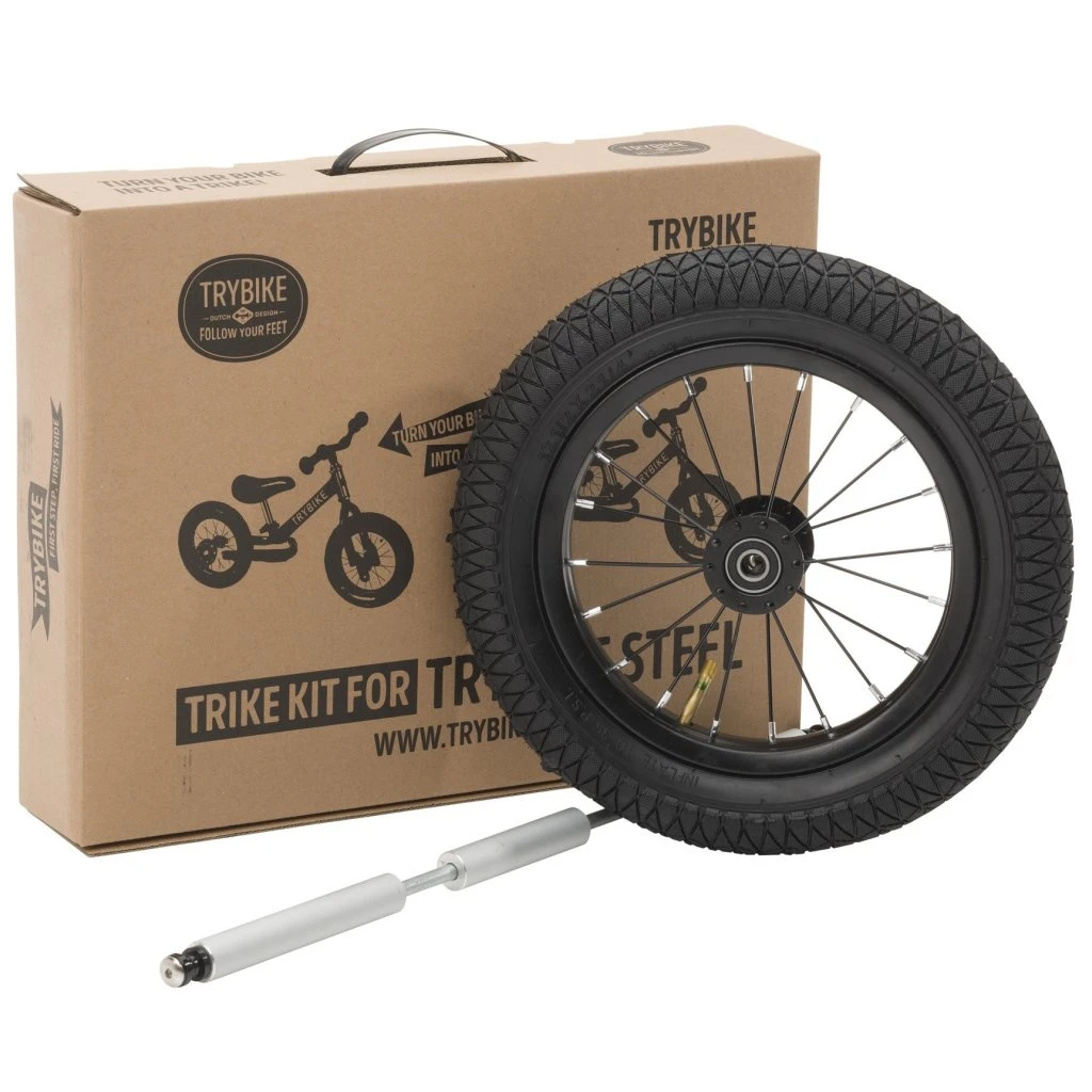 Mit diesem schönen Trike- Kit lässt sich das Zweirad Ihres Lieblings, das TRYBIKE Steel Black im Handumdrehen in ein Dreirad umwandeln.